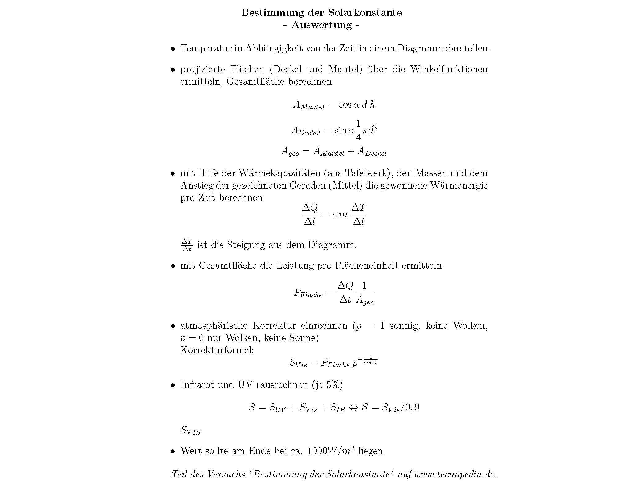 Wie viel Energie liefert die Sonne? Dies soll in diesem Versuch mit einfachen Hilfsmitteln abgeschätzt werden.